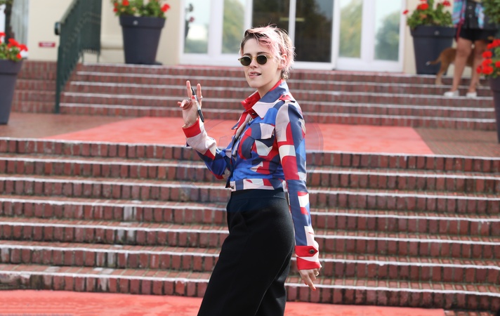Kristen Stewart w kolorowej koszuli i w rozowej grzywce na festiwalu w Deauville