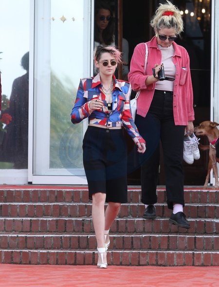 Kristen Stewart w kolorowej koszuli i w rozowej grzywce na festiwalu w Deauville