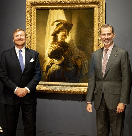 Krol Willem Alexander i krol Filip na otwarciu wystawy Rembrandt-Velazquez w Amsterdamie