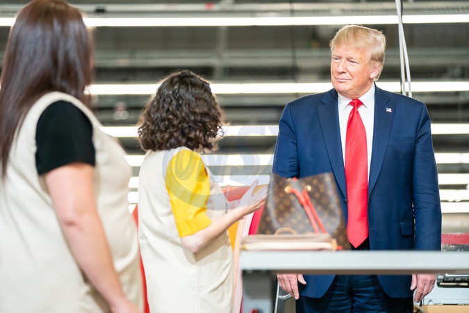 Donald Trump z corka w nowej fabryce Louis Vuitton w Teksasie
