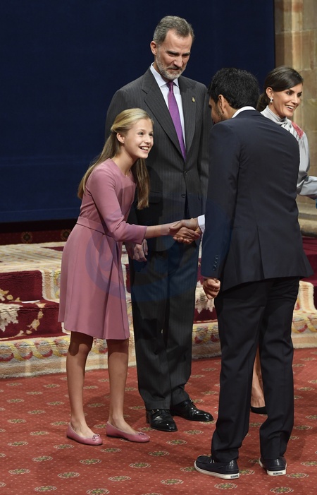 Hiszpanska para krolewska z corkami podczas ceremonii Princess of Asturias 2019
