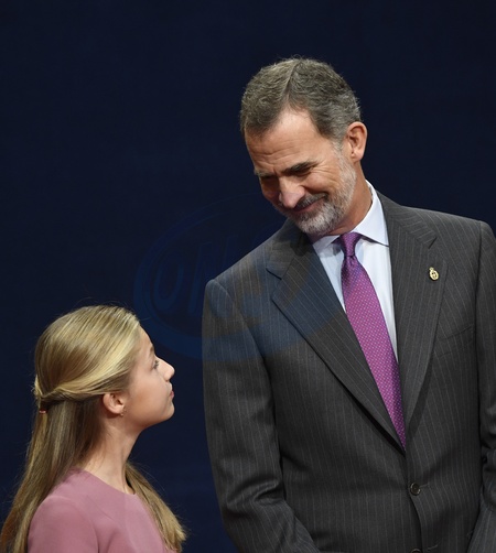 Hiszpanska para krolewska z corkami podczas ceremonii Princess of Asturias 2019