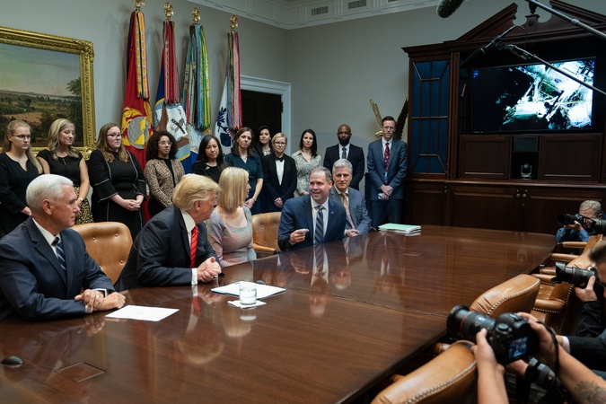 Donald Trump i Ivanka Trump na spotkaniu z astronautkami
