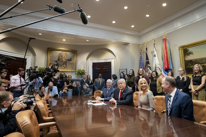 Donald Trump i Ivanka Trump na spotkaniu z astronautkami