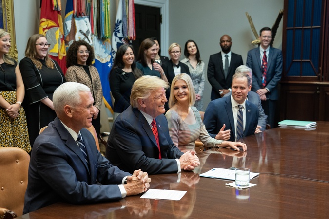 Donald Trump i Ivanka Trump na spotkaniu z astronautkami