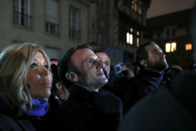 Macronowie ogladaja spektakl swiatla na katedrze w Amiens