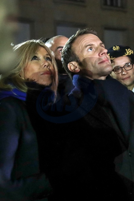 Macronowie ogladaja spektakl swiatla na katedrze w Amiens