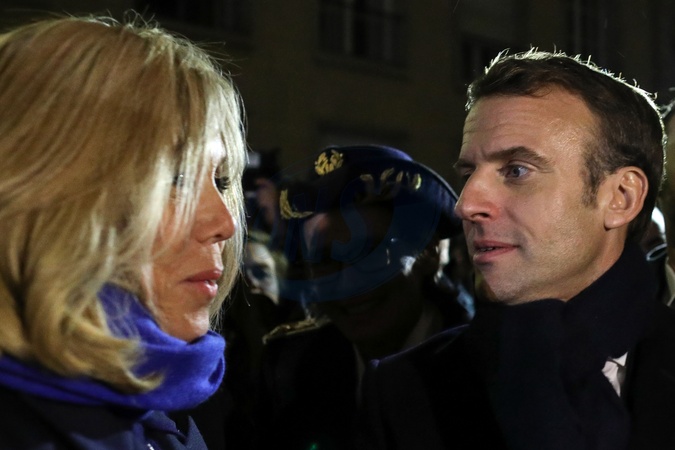 Macronowie ogladaja spektakl swiatla na katedrze w Amiens
