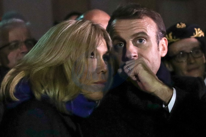 Macronowie ogladaja spektakl swiatla na katedrze w Amiens