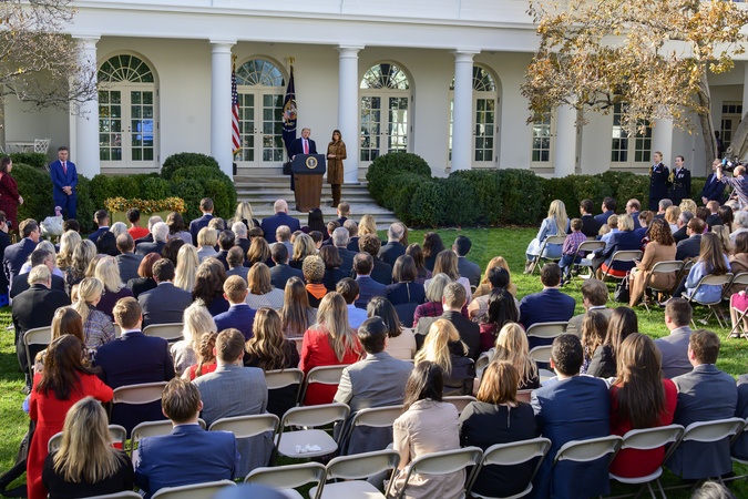Trumpowie podczas ulaskawienia indyka - swieto dziekczynienia