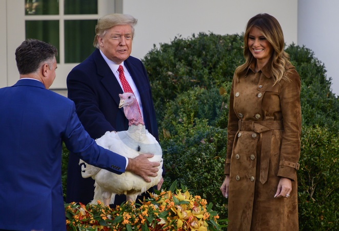 Trumpowie podczas ulaskawienia indyka - swieto dziekczynienia