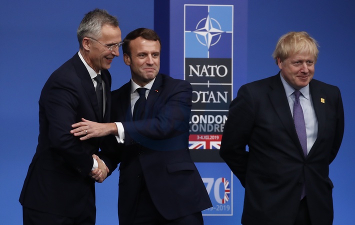 Jens Stoltenberg, Emmanuel Macron, Boris Johnson