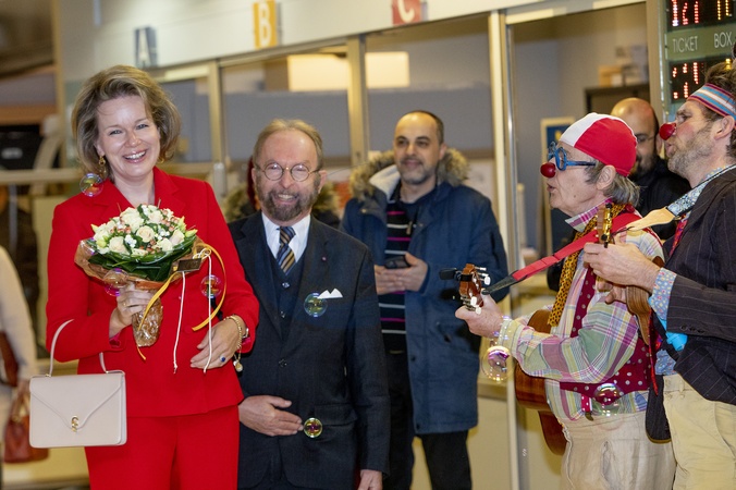 Krolowa Matylda w czerwonym garniturze odwiedzil szpital uniwersytecki dla dzieci