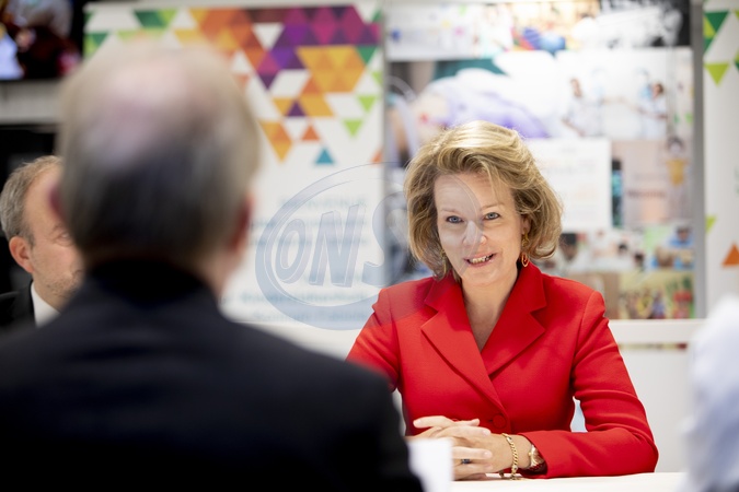 Krolowa Matylda w czerwonym garniturze odwiedzil szpital uniwersytecki dla dzieci