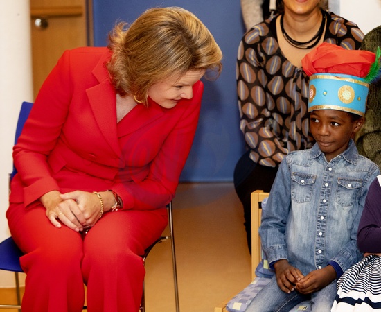 Krolowa Matylda w czerwonym garniturze odwiedzil szpital uniwersytecki dla dzieci