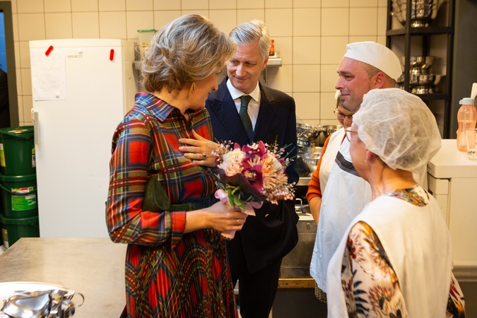 Krolowa Matylda i krol Filip na spotkaniu swiatecznym w schronisku
