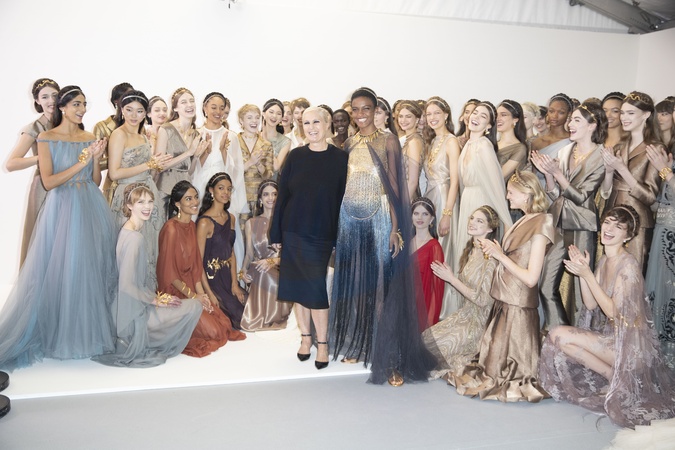 Maria Grazia Chiuri pozuje z celebrytami na pokazie mody