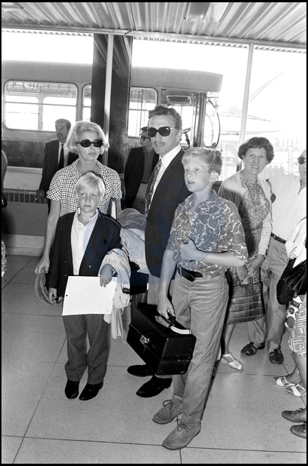 Kirk Douglas z zona Anne Buydens i synami Peter Douglas i Eric Douglas