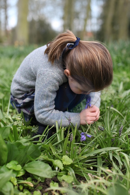 Ksiezniczka Charlotte wacha kwiaty w ogrodzie