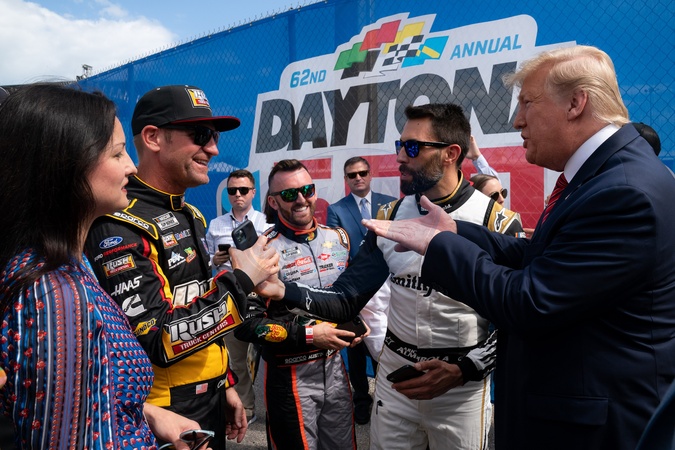 Trumpowie na wyscigu samochodowym NASCAR Daytona 500
