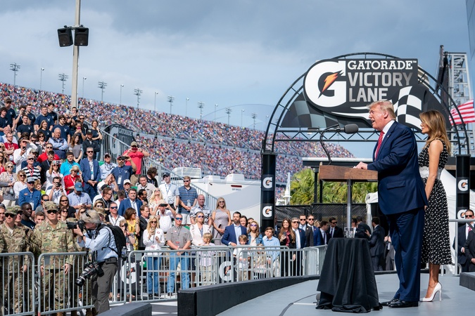Trumpowie na wyscigu samochodowym NASCAR Daytona 500