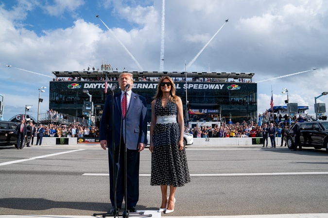 Trumpowie na wyscigu samochodowym NASCAR Daytona 500