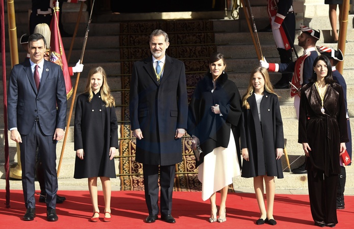 Pedro Sanchez, Filip, Letizia, Ksiezniczka Eleonora, Zofia (Sofia) Burbon