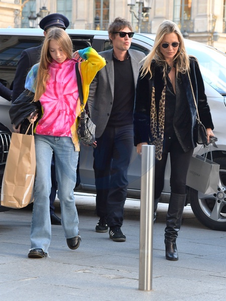 Kate Moss z corka i chlopakiem na zakupach w Paryzu