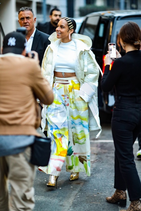 Alicia Keys w bialej, puchowej kurtce i w kolorowych spodniach wraca z NRJ Radio