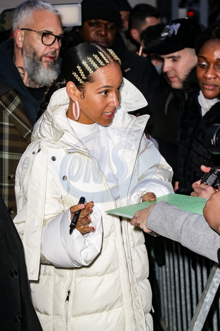 Alicia Keys w bialej, puchowej kurtce i w kolorowych spodniach wraca z NRJ Radio