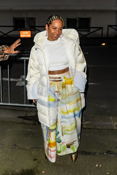 Alicia Keys w bialej, puchowej kurtce i w kolorowych spodniach wraca z NRJ Radio