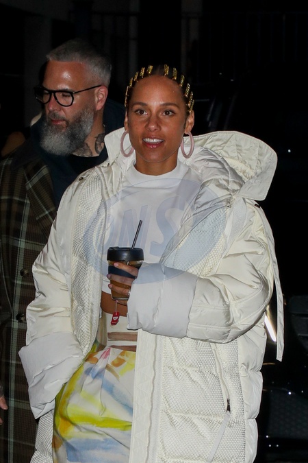 Alicia Keys w bialej, puchowej kurtce i w kolorowych spodniach wraca z NRJ Radio