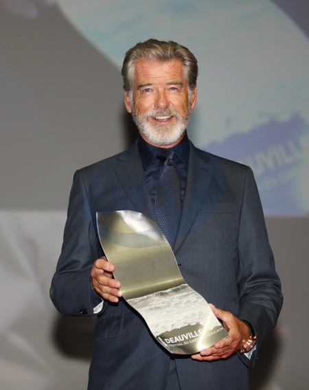 Pierce Brosnan ze statuetka na otwarciu Deauville American Cinema Festival