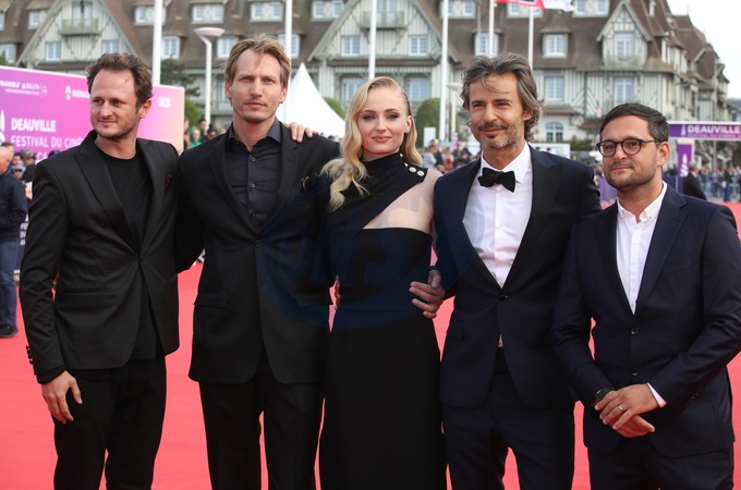 Sophie Turner w czarnej sukni na czerwonym dywanie na Festiwalu w Deauville