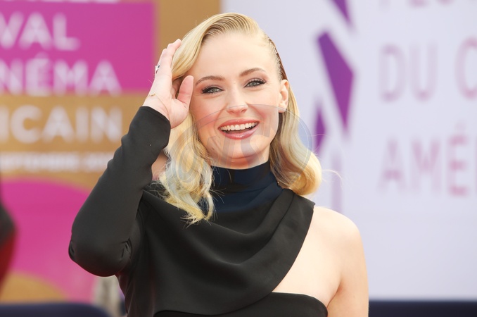 Sophie Turner w czarnej sukni na czerwonym dywanie na Festiwalu w Deauville