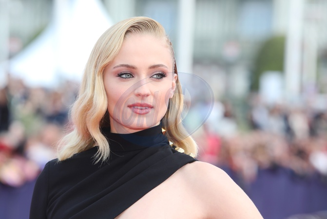 Sophie Turner w czarnej sukni na czerwonym dywanie na Festiwalu w Deauville