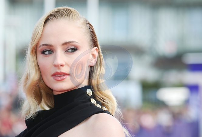 Sophie Turner w czarnej sukni na czerwonym dywanie na Festiwalu w Deauville