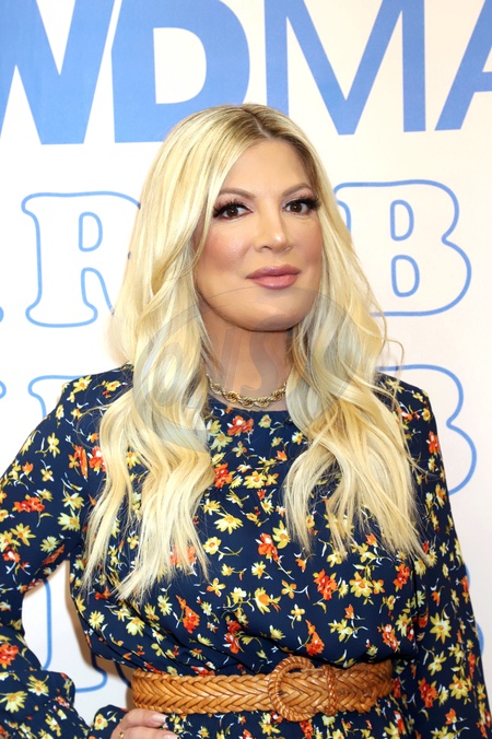 Tori Spelling w kwiecistej sukience podczas wywiadu