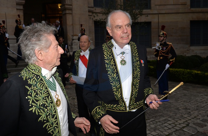 Roman Polanski podczas ceremonii instalacji F. Mitterranda w Akademii Sztuk Pieknych w Paryzu