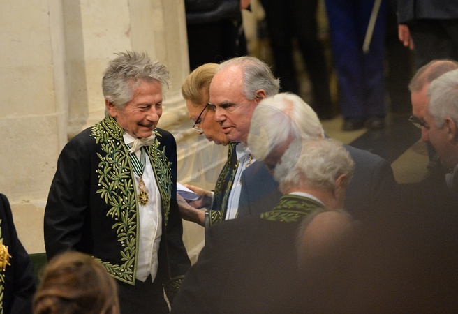 Roman Polanski podczas ceremonii instalacji F. Mitterranda w Akademii Sztuk Pieknych w Paryzu