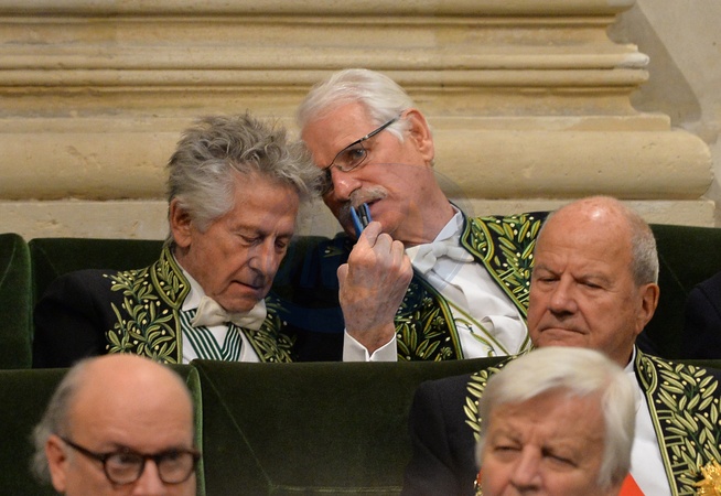 Roman Polanski podczas ceremonii instalacji F. Mitterranda w Akademii Sztuk Pieknych w Paryzu