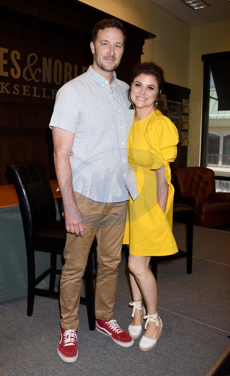 Tiffani Thiessen w zoltej sukience promuje ksiazke