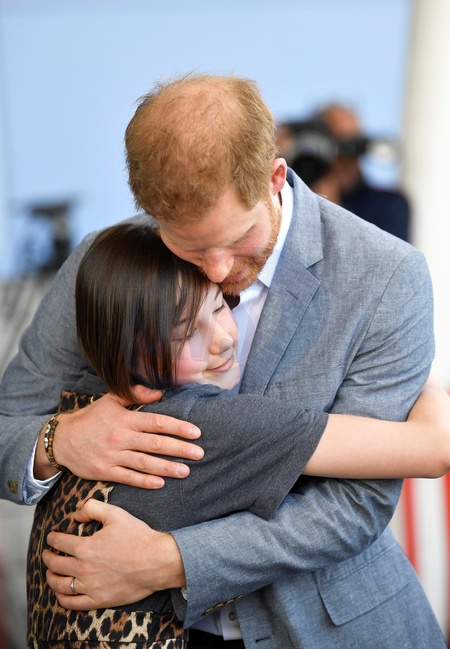 Usmiechniety i zadowolony KSIAZE HARRY podczas wizyty w OXSRAD Disability Sports and Leisure Centre