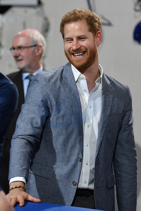 Usmiechniety i zadowolony KSIAZE HARRY podczas wizyty w OXSRAD Disability Sports and Leisure Centre