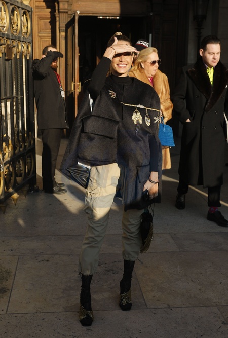 Goscie wracaja z pokazu Schiaparelli, Paryz