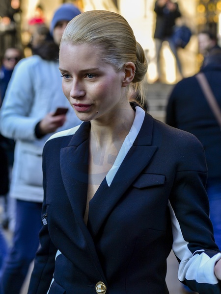 Goscie wracaja z pokazu Schiaparelli, Paryz