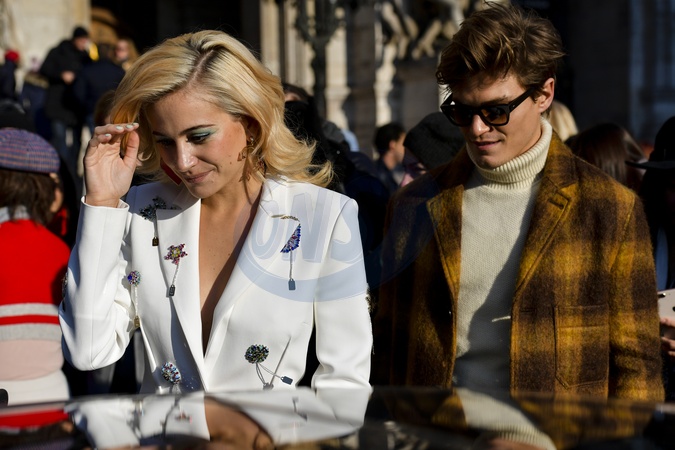 Goscie wracaja z pokazu Schiaparelli, Paryz