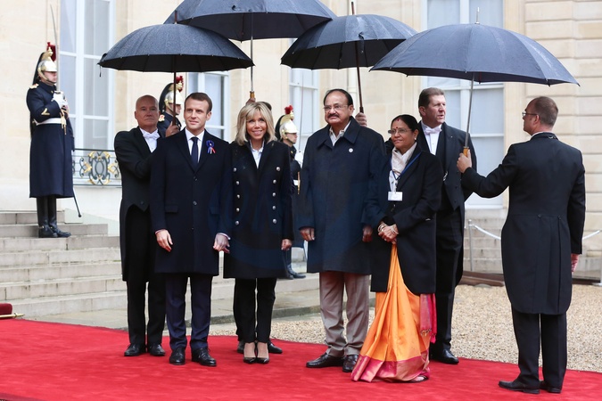 Emmanuel Macron, Brigitte Macron,Venkaiah Naidu z zona Usha