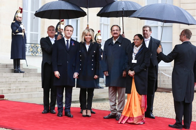 Emmanuel Macron, Brigitte Macron,Venkaiah Naidu z zona Usha