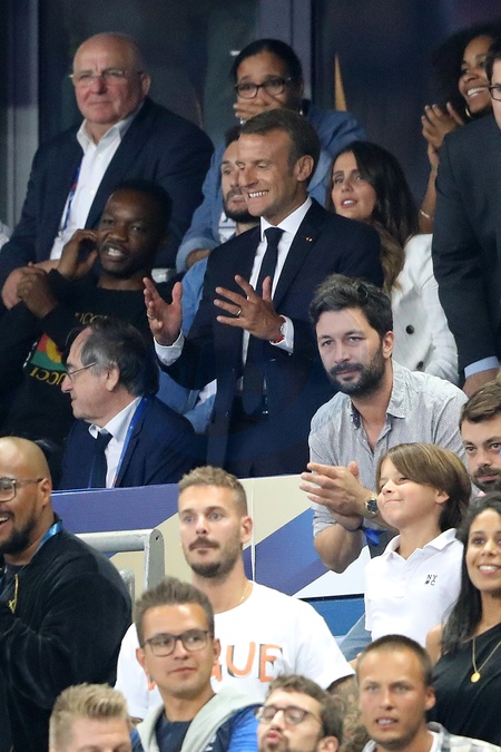 Steve Mandanda, Hugo Lloris z zona Marine, Noel Le Graet, Emmanuel Macron, Matt Pokora